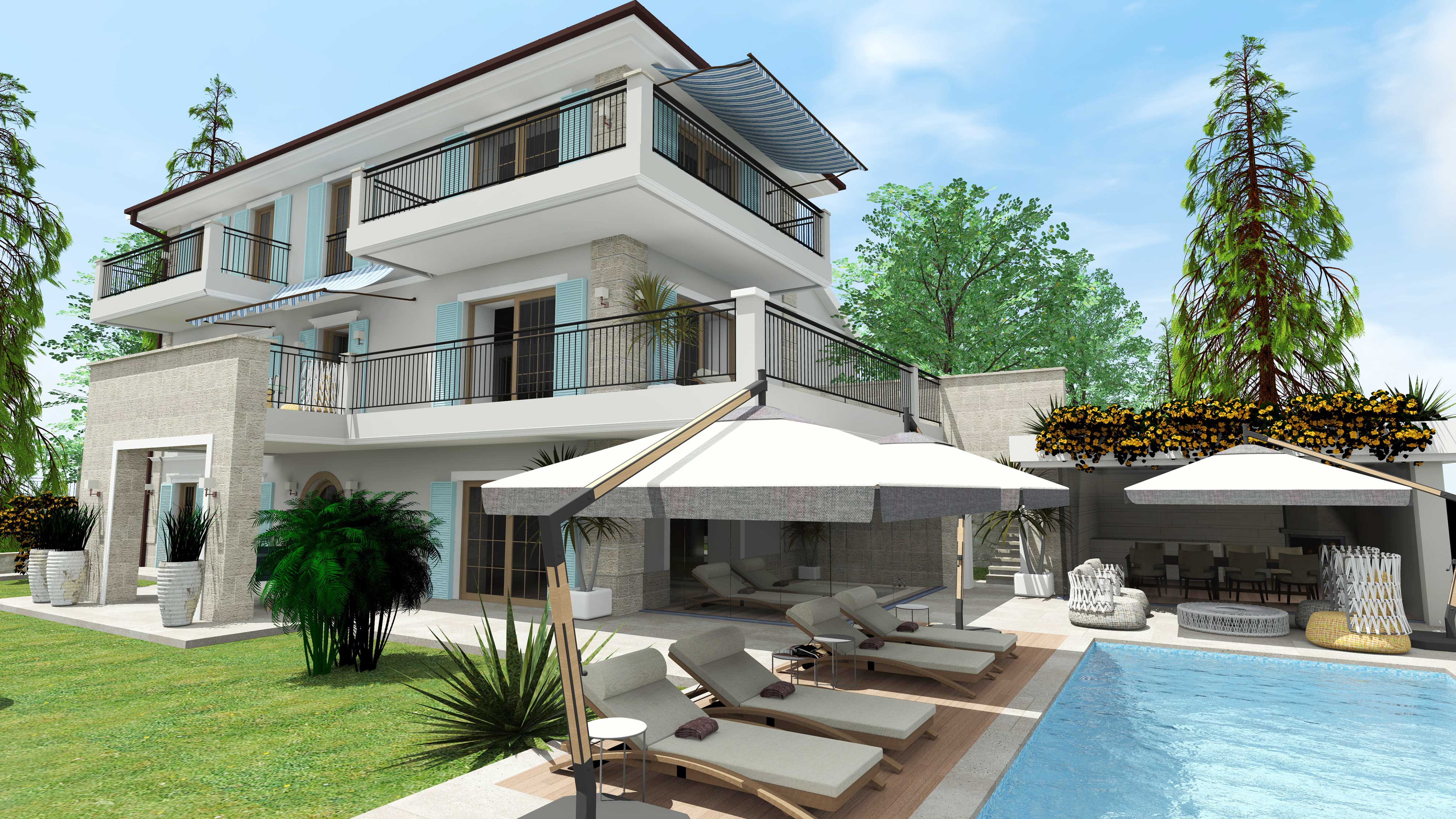 Projekt eksterijera izrađuje se na temelju detaljnog razgovora s investitorom o njegovim željama, potrebama i mogućnostima. Potom se izrađuje idejno rješenje s 3D prikazom i prezentira investitoru, a nakon dogovora i odabira konačnog rješenja izrađuju se tlocrti, popisi i opisi konkretnog namještaja, rasvjete i dekoracije s njihovim šiframa i cijenom. Prema potrebi izrađuje se i troškovnik radova te nacrti za namještaj po mjeri.